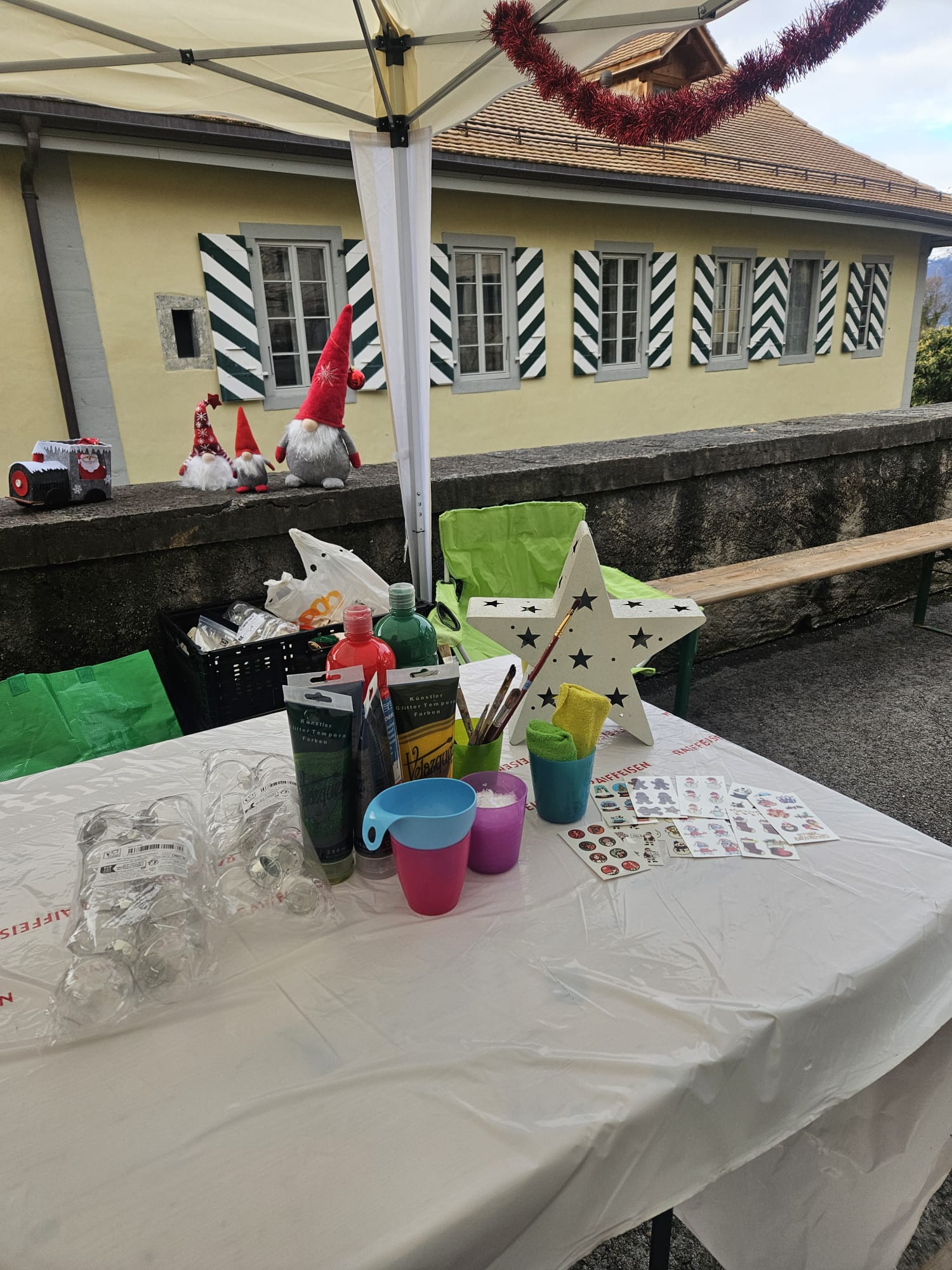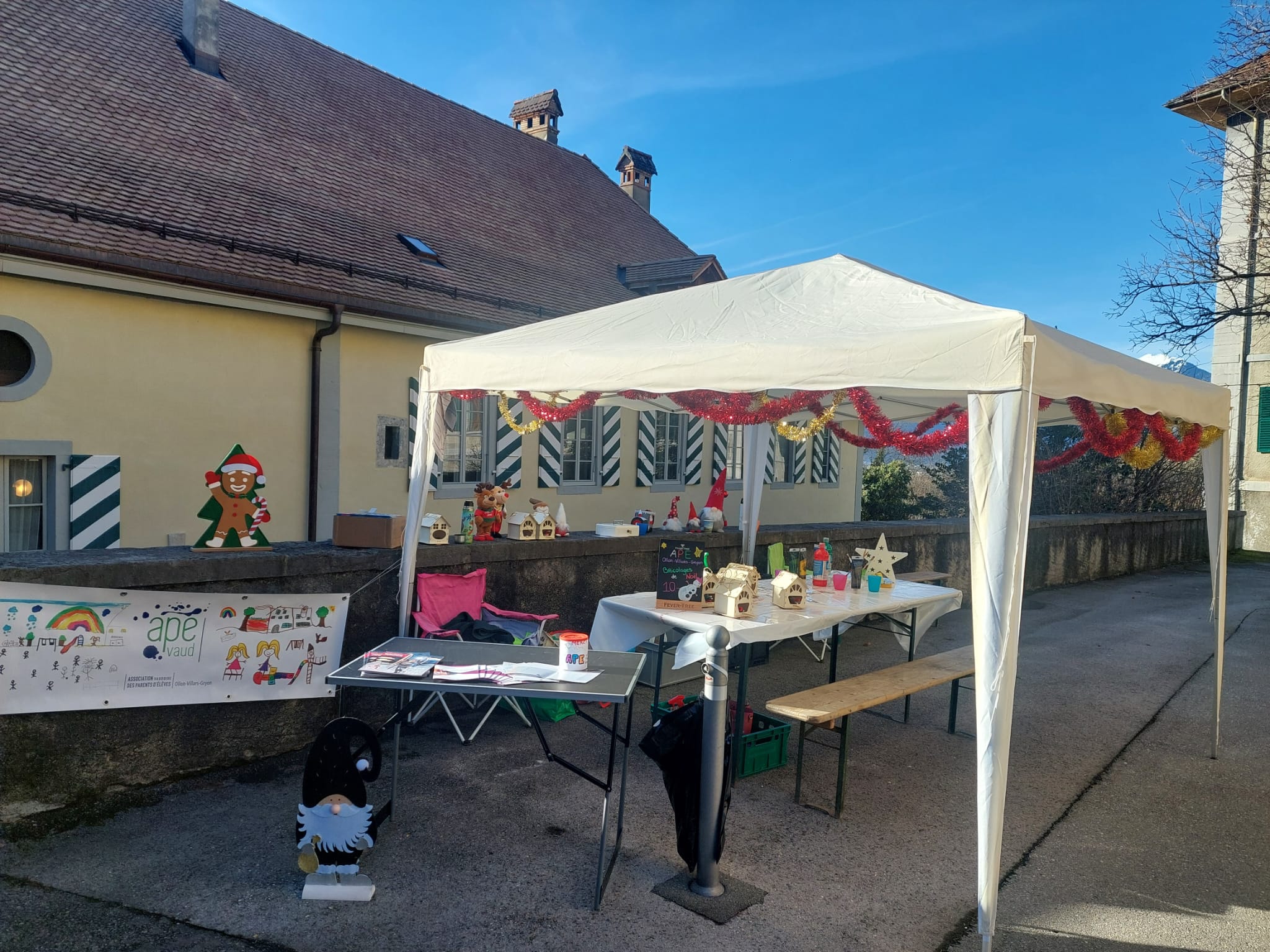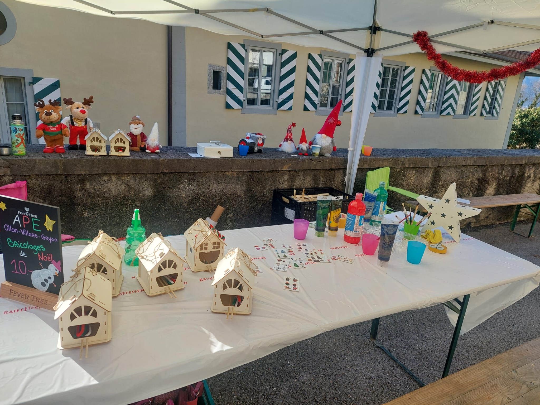 Le 29 novembre dernier à eu lieu le marché de Noël d'Ollon, lors de cette journée, les enfants ont pu décorer des petites maisons et des boules de Noël.